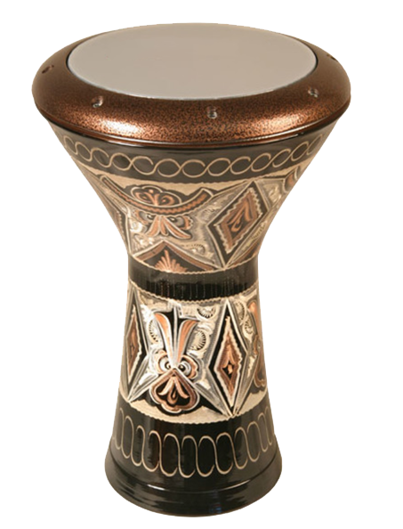 Traditionally, the body is made of clay and covered with an animal skin. For reasons of durability, modern instruments are made of metal and covered with a plastic skin..